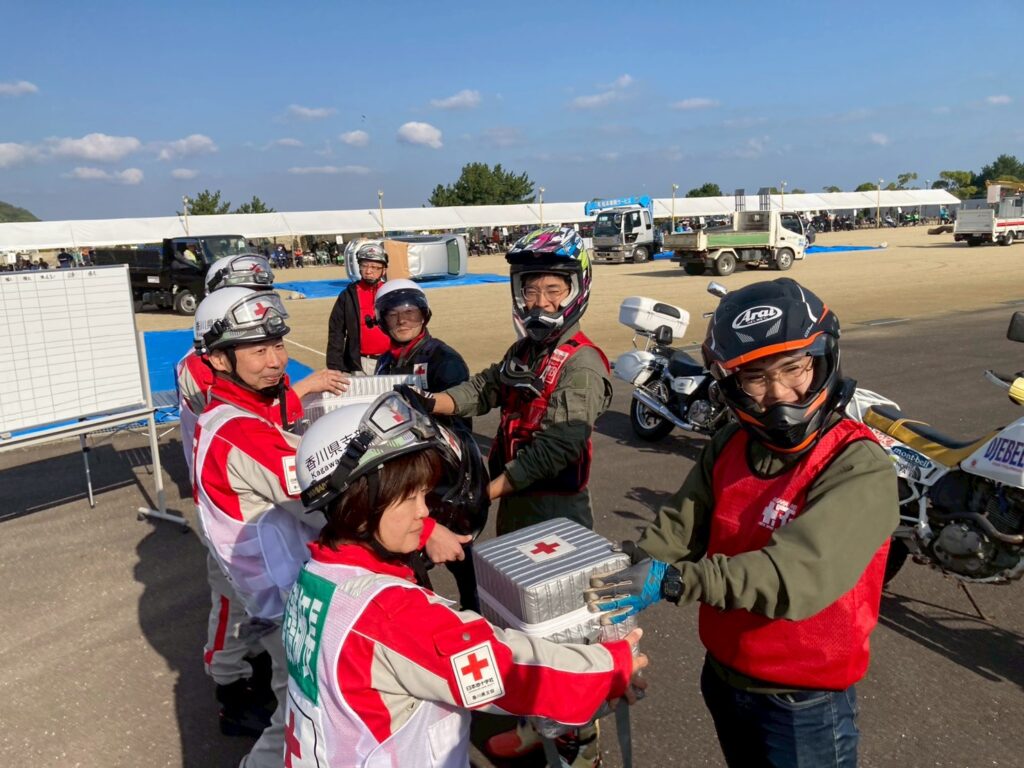 災害状況に応じて、香川RBレッドクロスと香川RBネットワークがバイクで出動し、